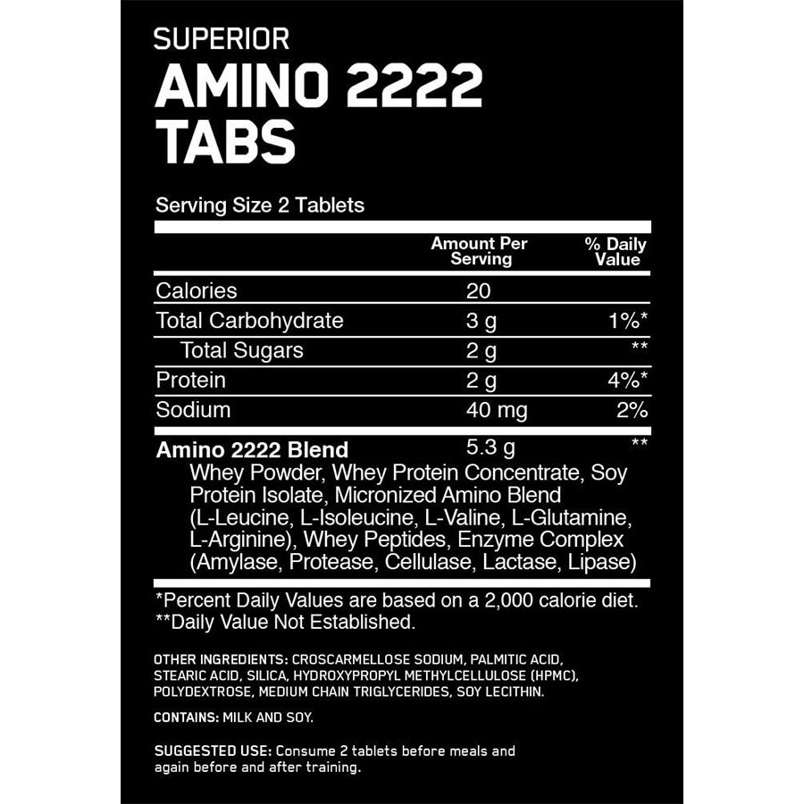 ON’s Superior Amino 2222 Tabs provide 2.2 grams of 18 different amino acids to add to the amount you take in through protein shakes, protein bars and whole foods. Used in conjunction with a well-planned diet that includes ‘complete’ proteins, these tablets can play a role in supporting muscle recovery from exercise. Because we used micronized aminos, they can get into your system that much quicker.